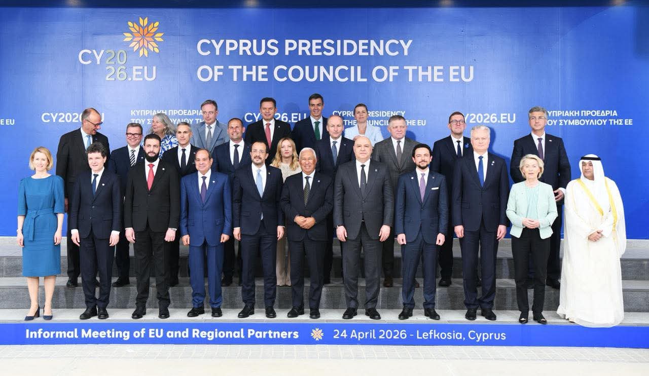 شارك الرئيس عبد الفتاح السيسي، اليوم في العاصمة القبرصية نيقوسيا، في اجتماع تشاوري عُقد بين قادة عدد من الدول العربية، وقادة دول الاتحاد الأوروبي، ورئيس المجلس الأوروبي، ورئيسة المفوضية الأوروبية.