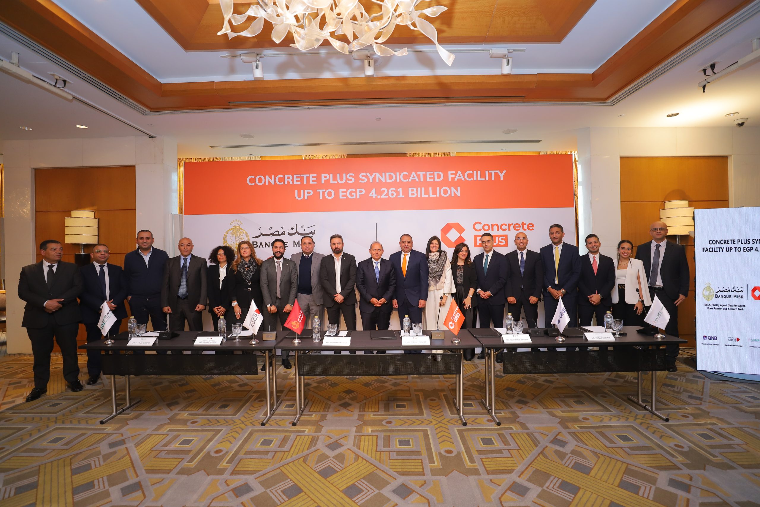 وقد تم التوقيع بحضور هشام عكاشه – الرئيس التنفيذي لبنك مصر، ومحمد بدير- الرئيس التنفيذي ل QNB مصر ، وعمرو الجارحي وزير المالية الأسبق والرئيس التنفيذي والعضو المنتدب ل ميدبنك ، وباولو فيفونا الرئيس التنفيذي و العضو المنتدب لبنك الإسكندرية ، وتامر عاصم – رئيس تمويل الشركات ببنك أبو ظبي التجاري مصر ، وطارق يوسف – رئيس مجلس الإدارة و العضو المنتدب لشركة كونكريت بلس للمقاولات و الصناعة وحسام فكري – نائب رئيس مجلس الإدارة ، و لفيف من قيادات البنوك والشركة.