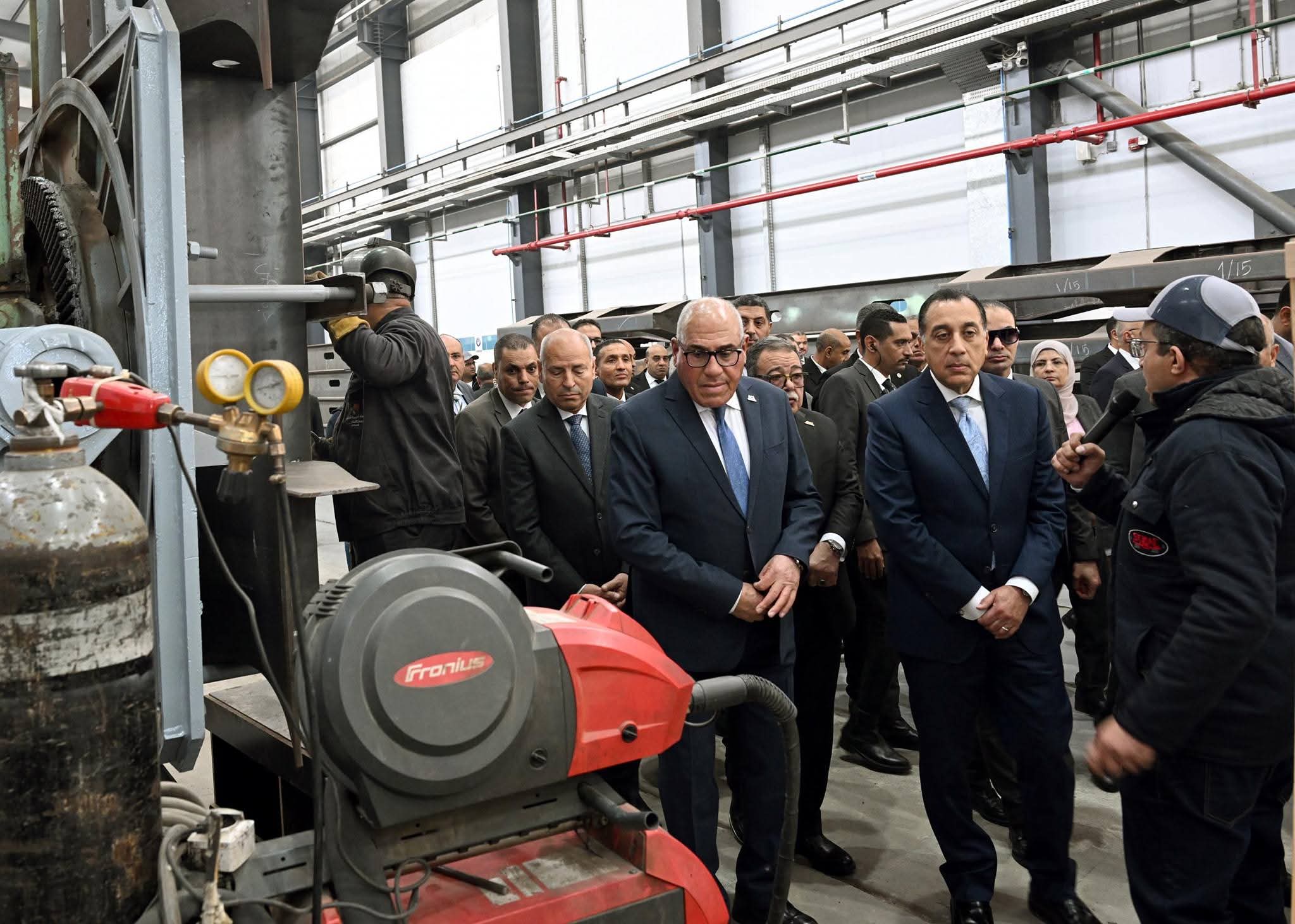 ثم توجه رئيس الوزراء إلى مركز القطع بالبلازما، حيث شرح أحمد إبراهيم، مكونات المركز التي تشمل روبوتات لحام وقطع تعمل بالذكاء الاصطناعي، بالإضافة إلى ماكينات قطع بالبلازما، ومخزن الخامات.